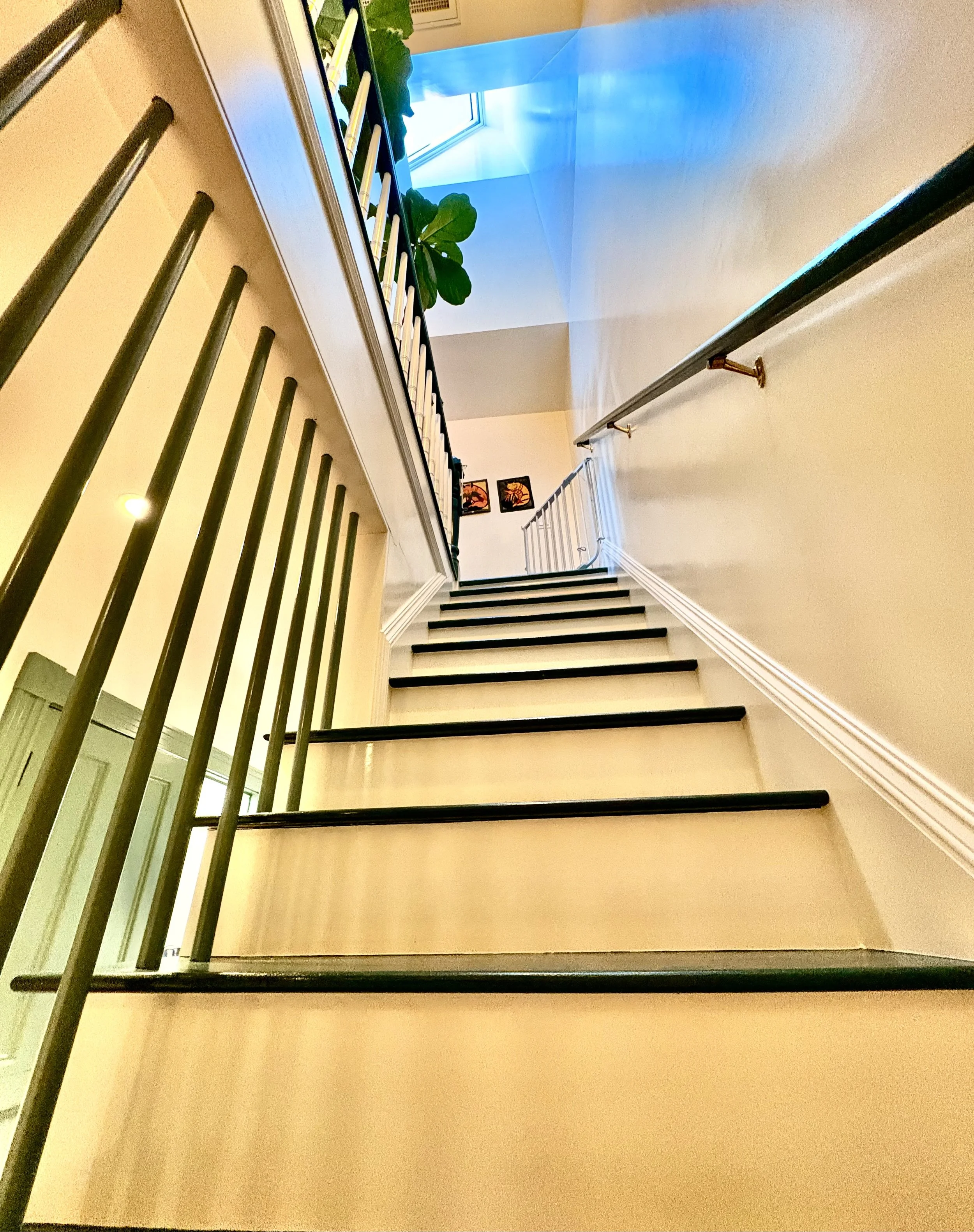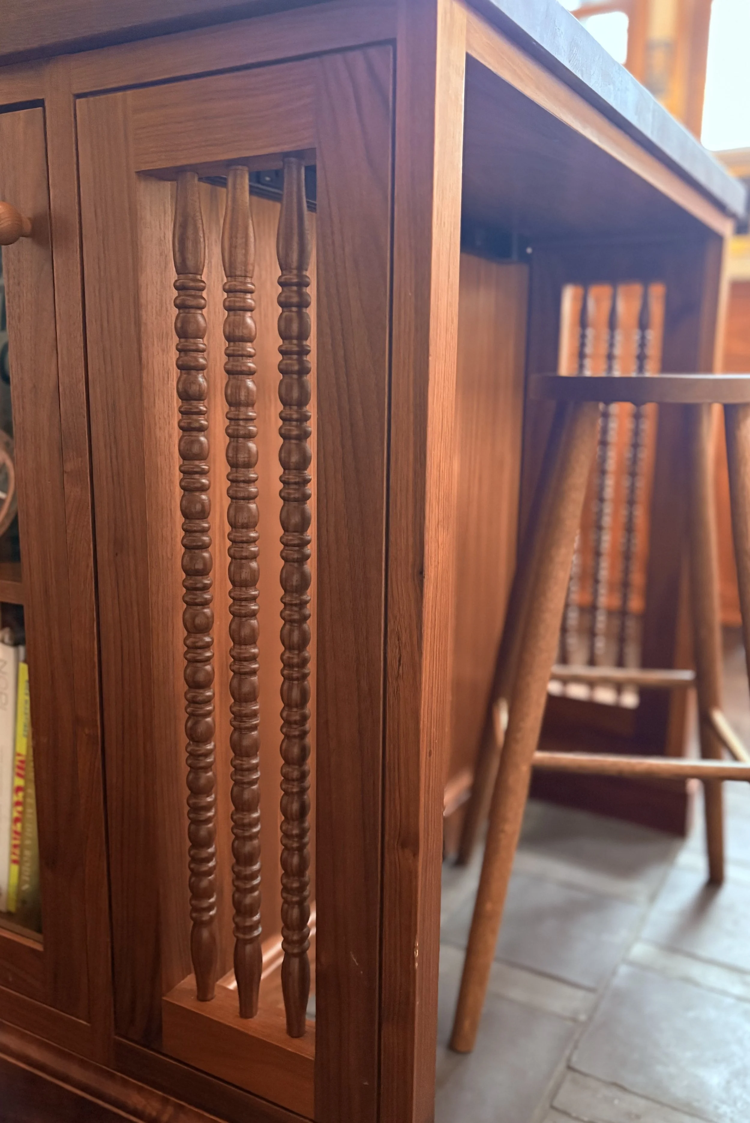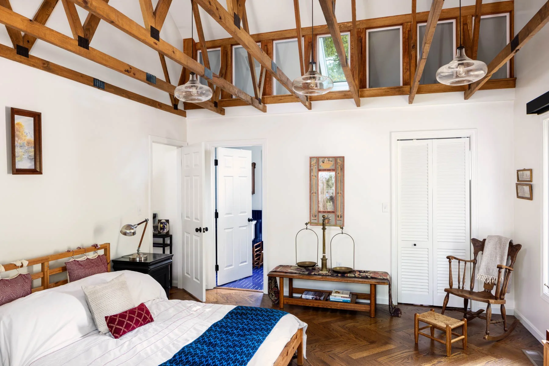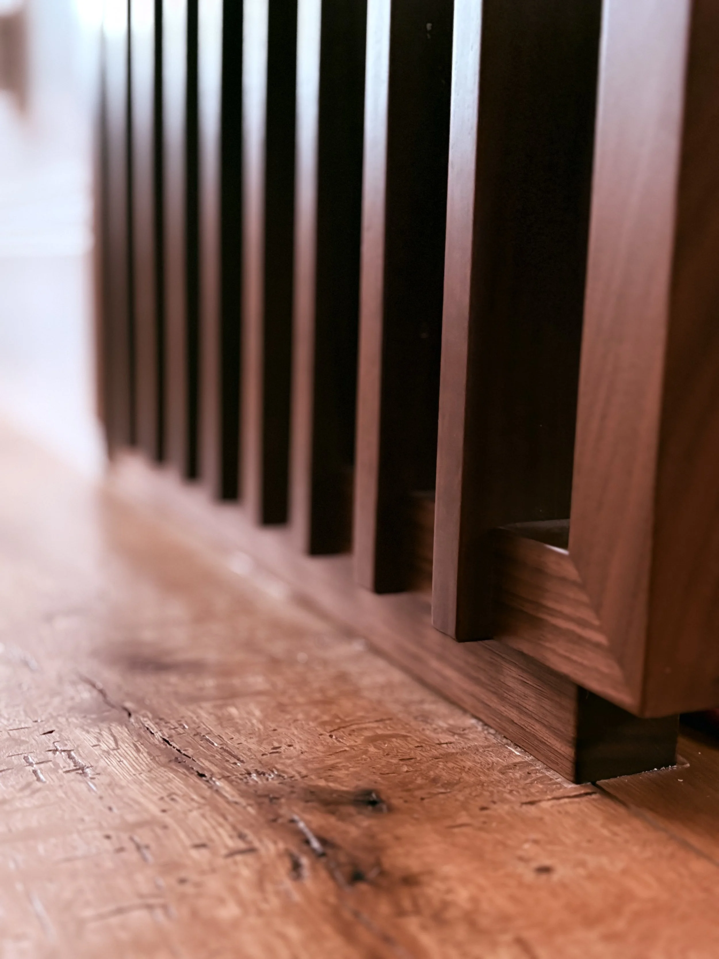 The home had not been updated in almost 50 years. Spaces were constrained, the interior materials dated and degraded. We opened internal and external walls, and attempted to fill the interior spaces with the maximal amount of salvaged or sustainably produced materials, including salvaged walnut, salvaged oak, reclaimed banisters and tracery, terra cotta and recycled brick tiles. Trims were painted in bright alluring colors, and built-ins were given arches, tracery and sumptuous moldings. The result is a new renovation that feels warm, enchanting and timeless.